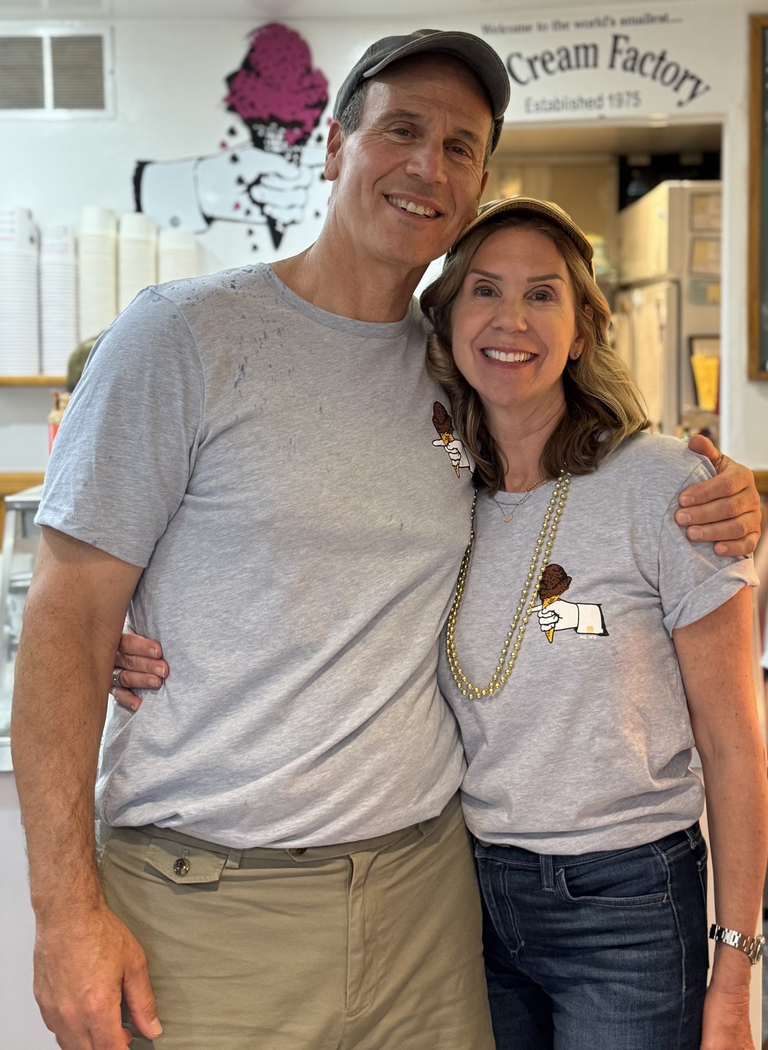 Retirement beckoned to Robert in 2020, 38 years after he purchased Dr. Mike’s. The next generation Dr. Mike, and only the shop’s third owner, is Ridgefield resident David Nussbaum. He and his wife, Lynn, took possession of the store, the secret ice cream recipes (now numbering approximately 150 flavors), a new and much more efficient Emery Thompson batch freezer, and a cash register (the old cigar box has long since been replaced). Brimming with energy and fresh ideas, the Nussbaums plan to open a second store in Stamford in Spring 2026. In Bethel, they launched a line of T-shirts and hats and remodeled the store in winter 2020-21 – its first cosmetic overhaul since 1988. Most importantly, they pledge to make the same high quality ice cream that Peter and Robert made before them.